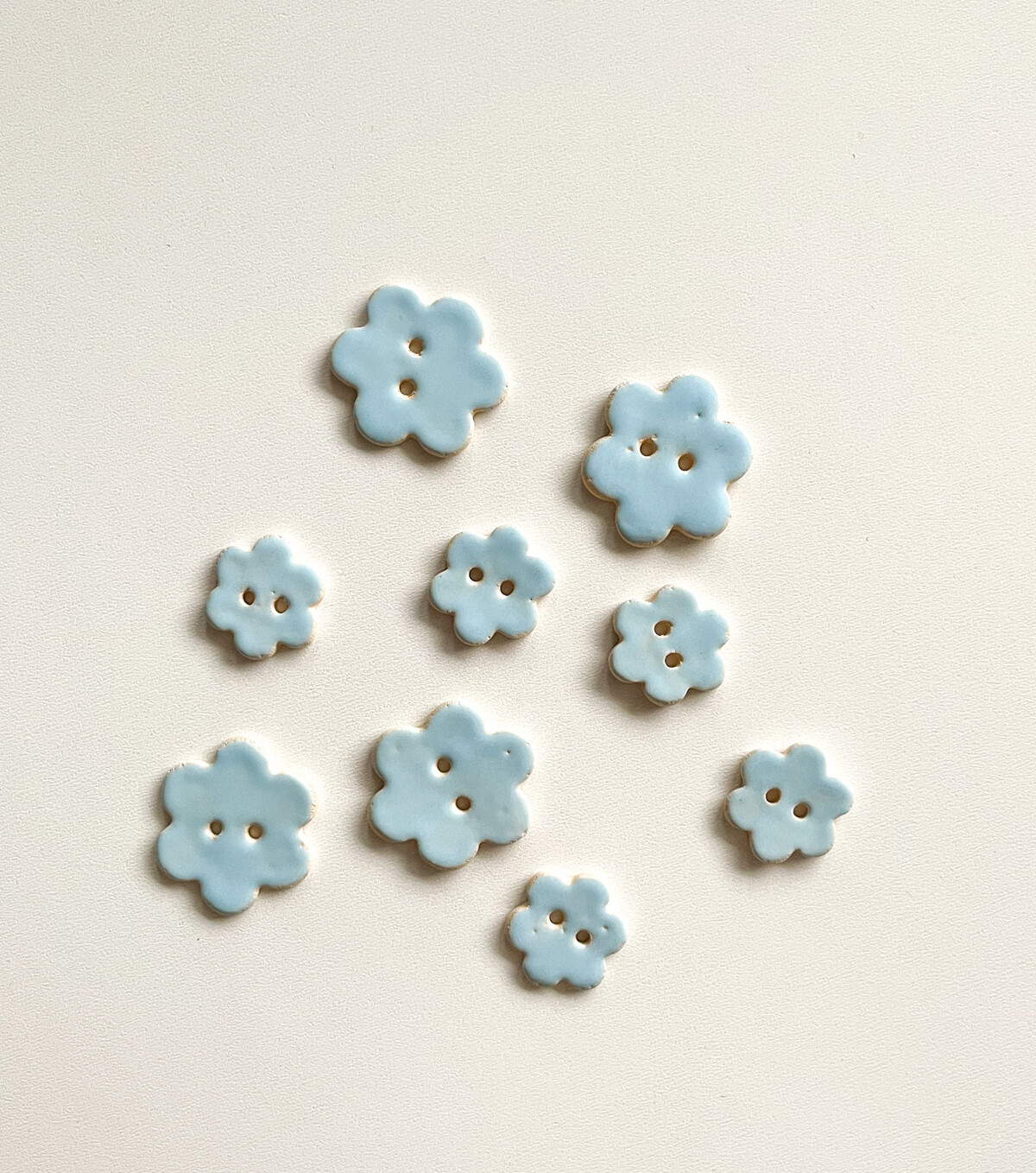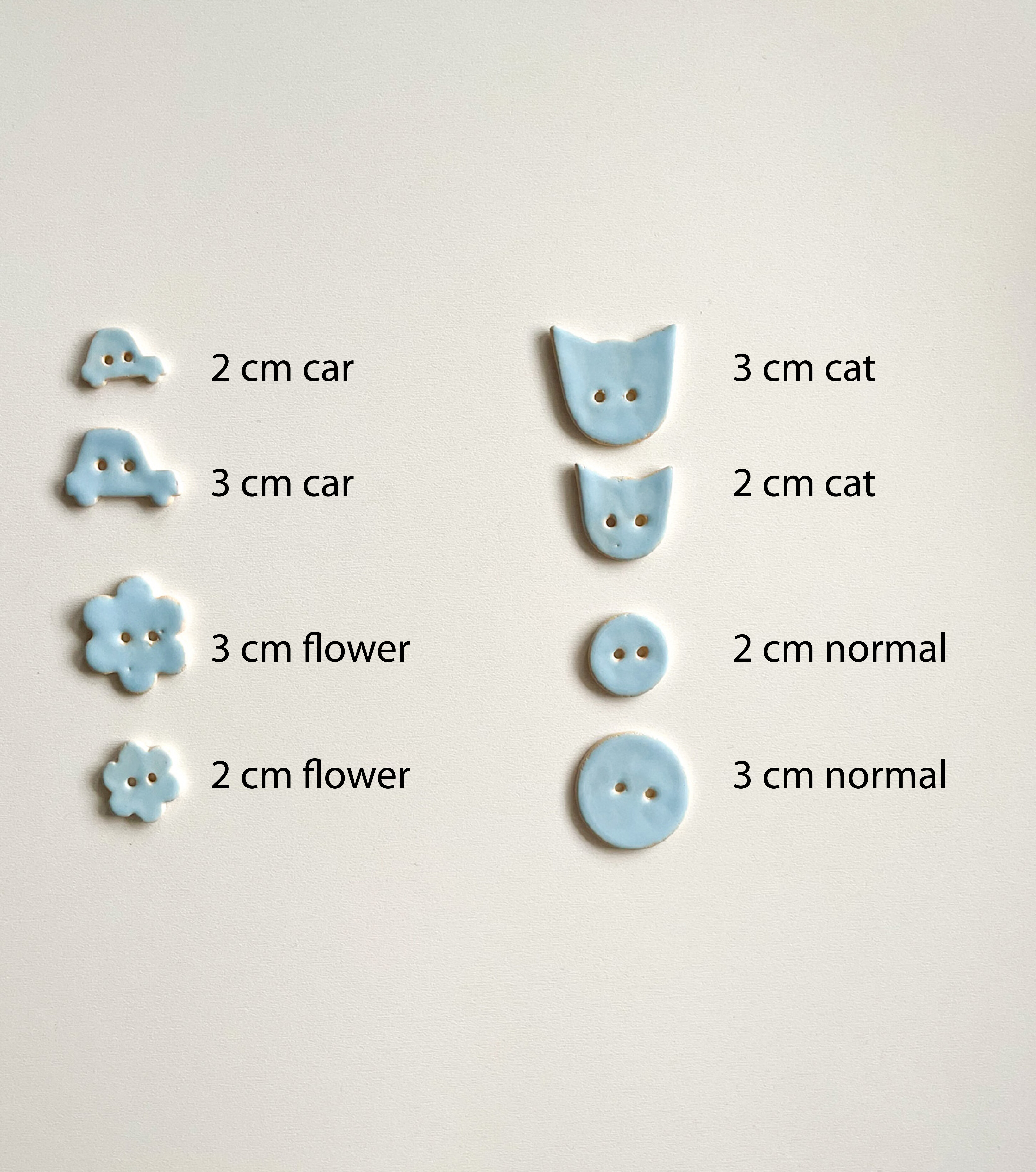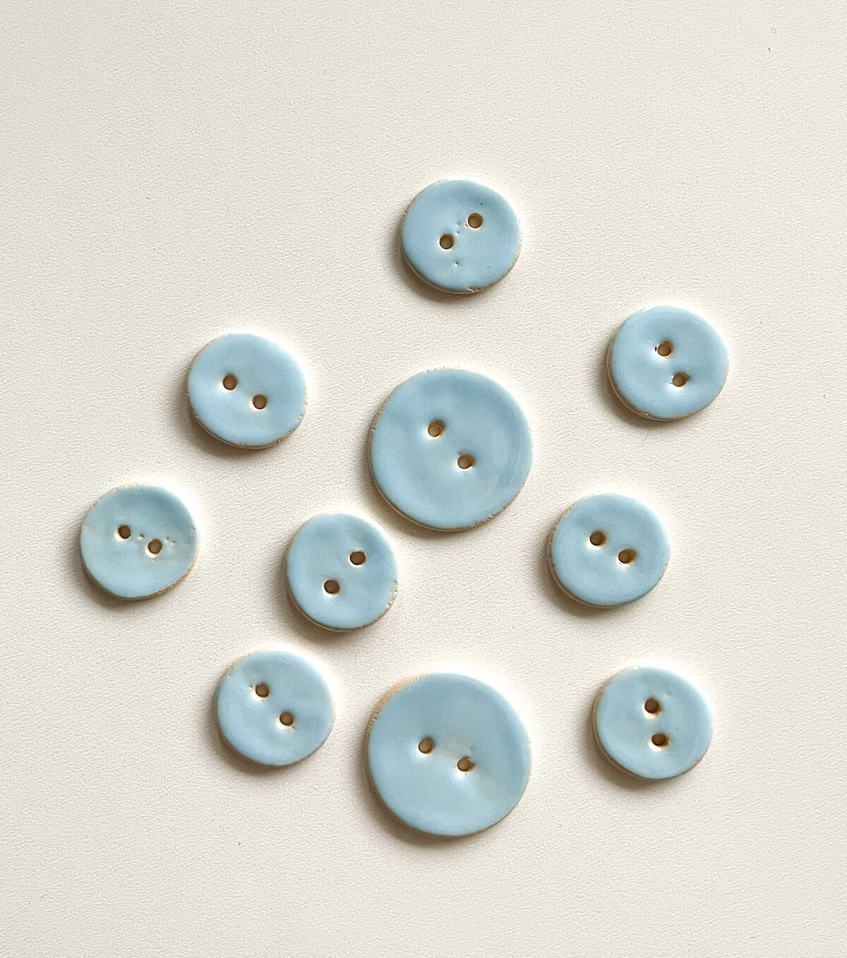 Ceramiczne guziki ręcznie robione w dwóch wielkościach.