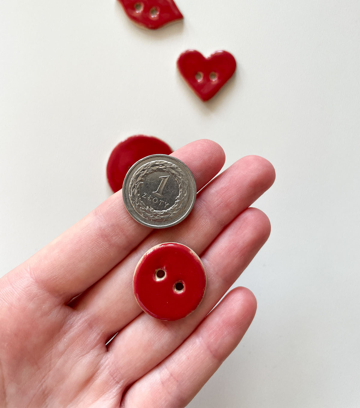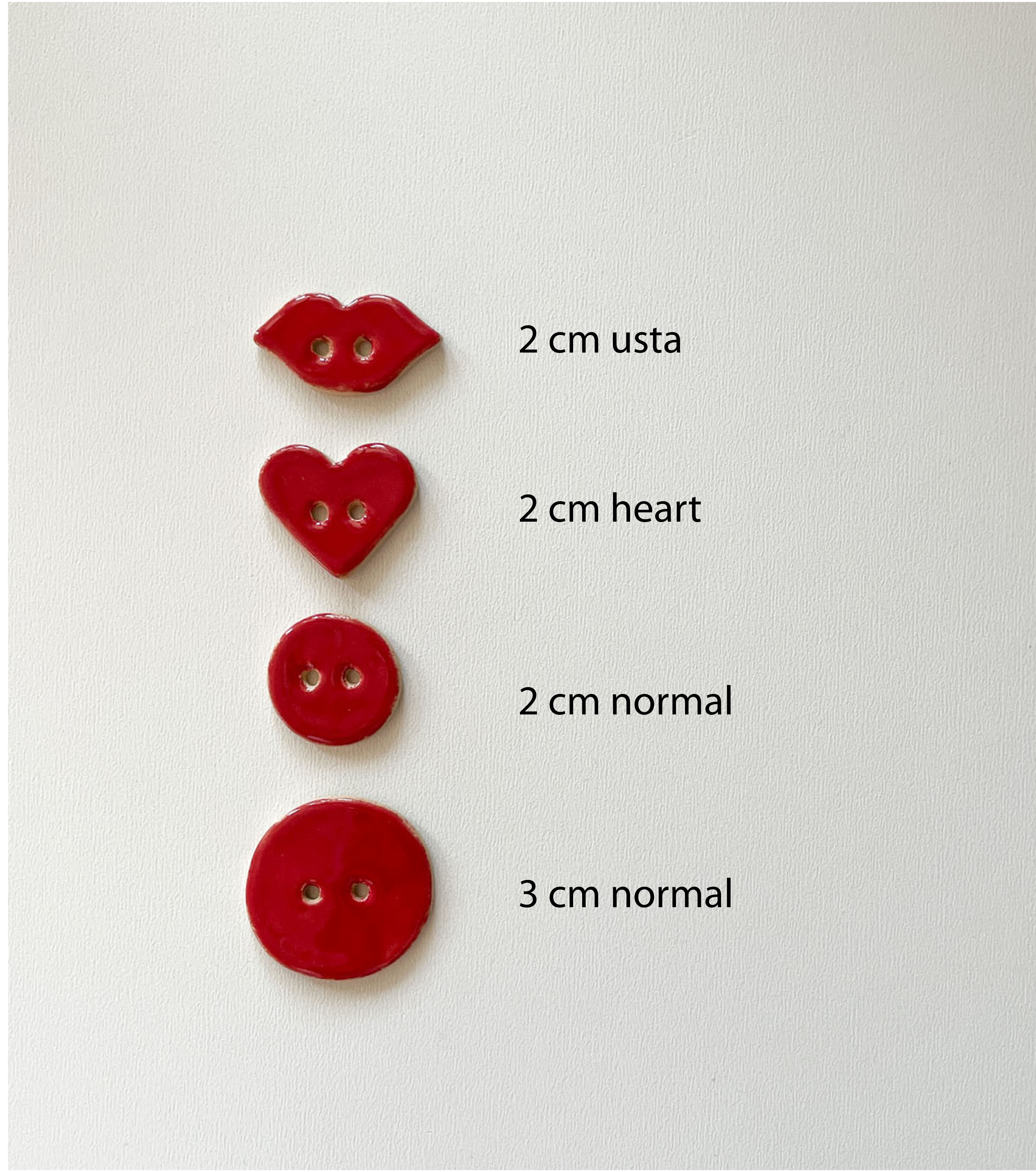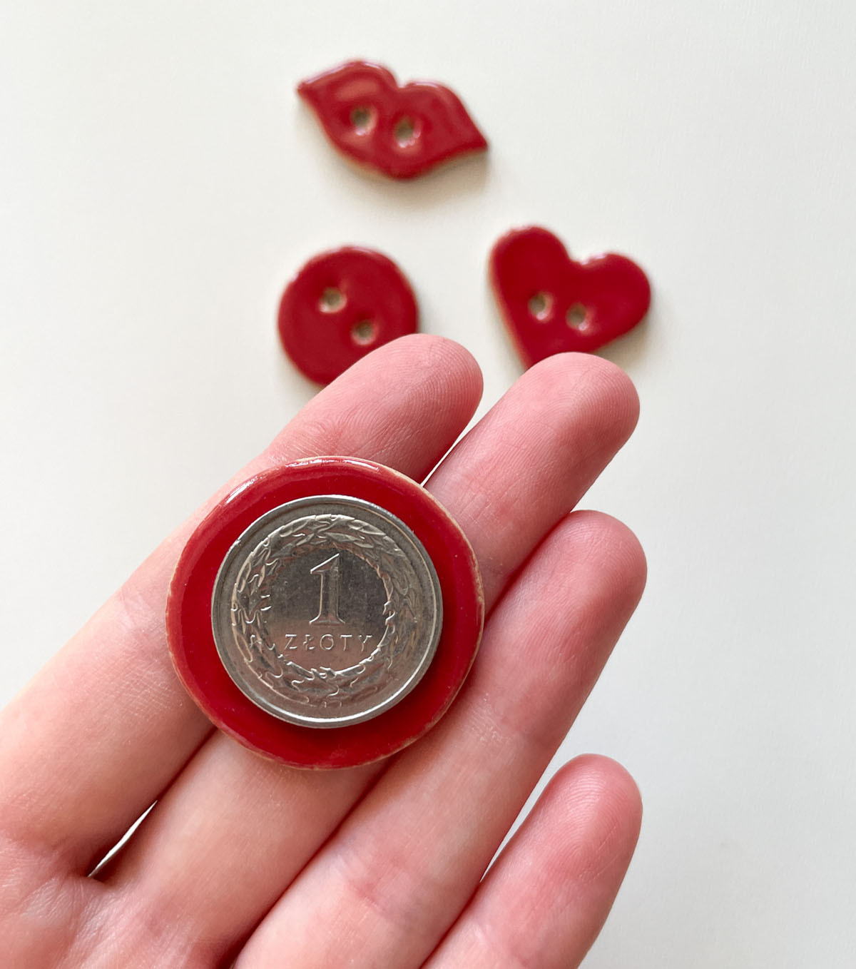 Ceramiczne guziki ręcznie robione w dwóch wielkościach.
