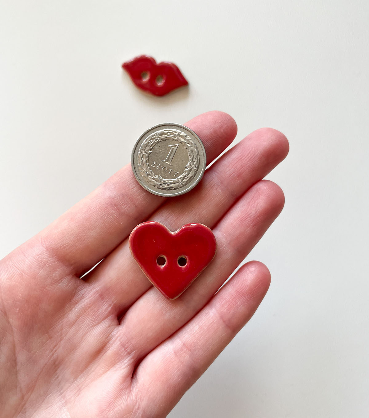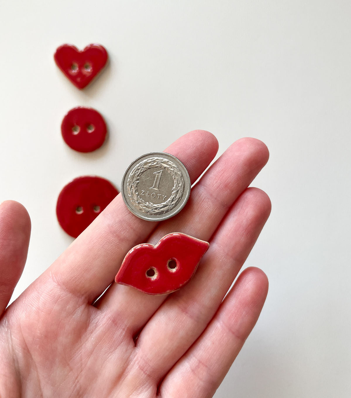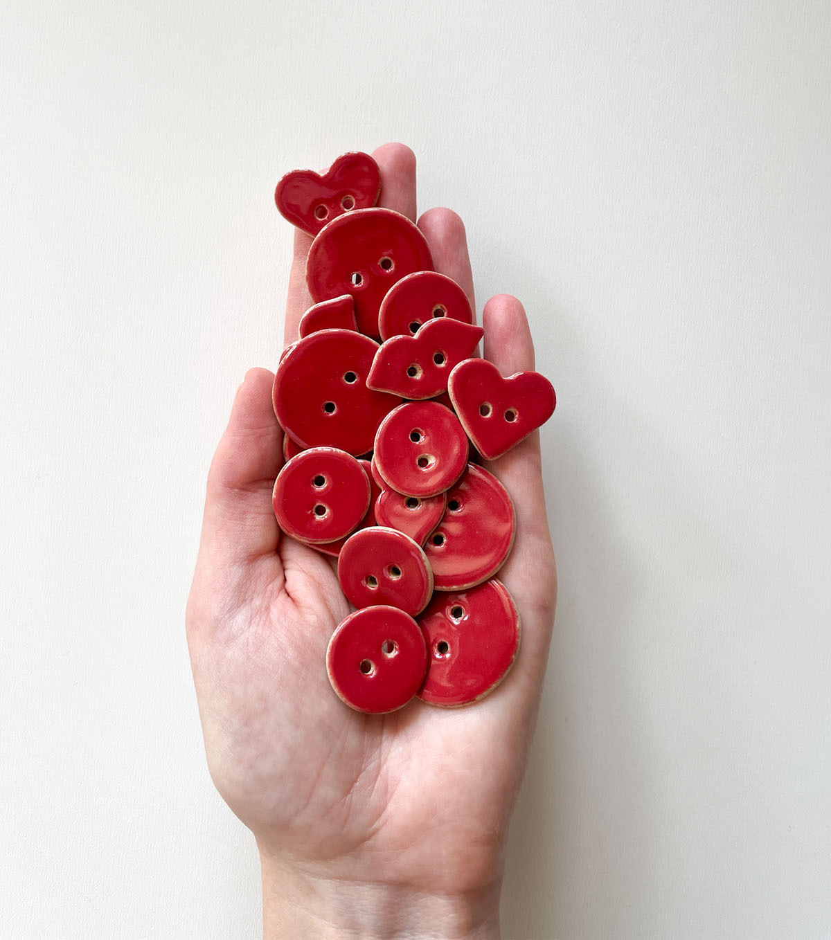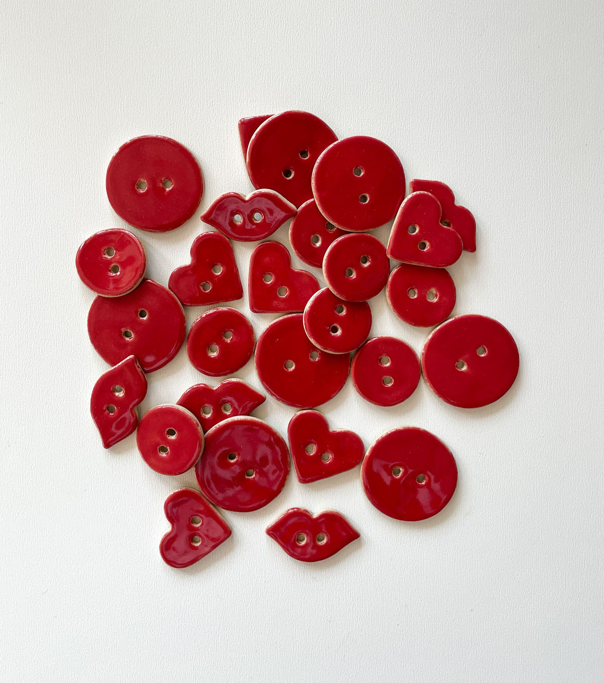 Ceramiczne guziki ręcznie robione w dwóch wielkościach.