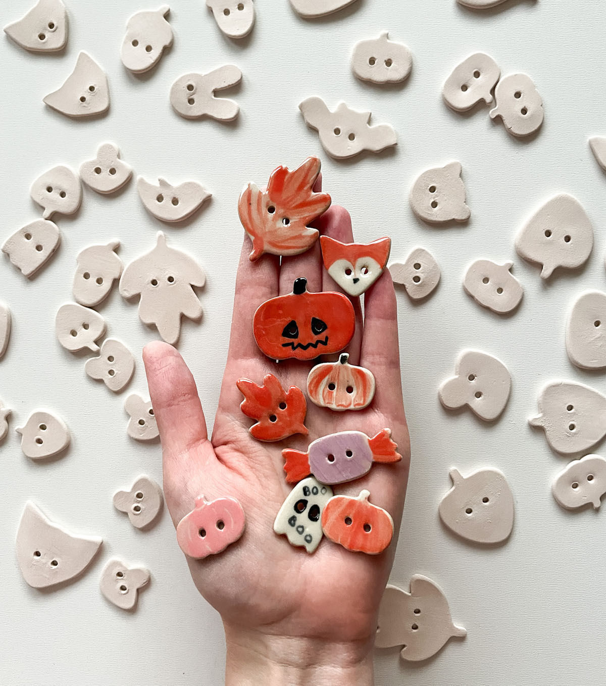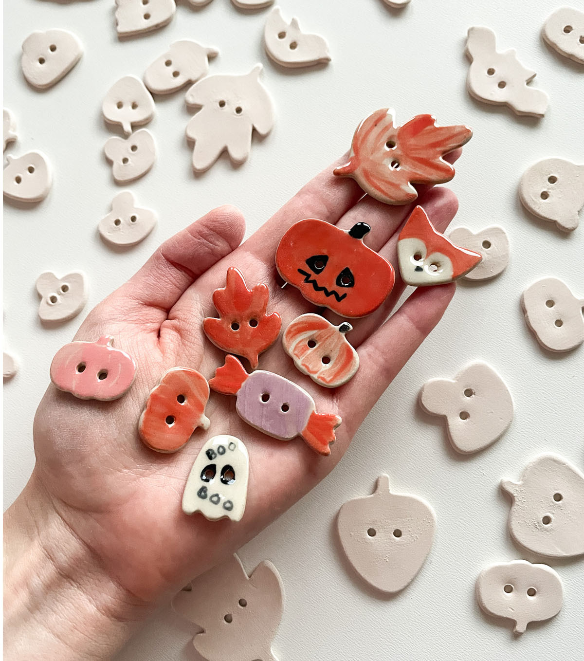 • Guziki około ø 2 cm i ø 3 cm w typowo jesiennym i halloween'owym klimacie.
